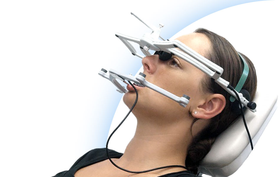 Для диагностики ВНЧС на голове закрепляют специальное оборудование: верхнюю дугу с упором на виски и нос, нижнюю подвижную дугу, нижнечелюстную ложку для фиксации прикуса. Врач быстро и профессионально устанавливает все элементы, не вызывая у пациента болевых ощущений. На подготовку оборудования по индивидуальным параметрам уходит 40 минут.